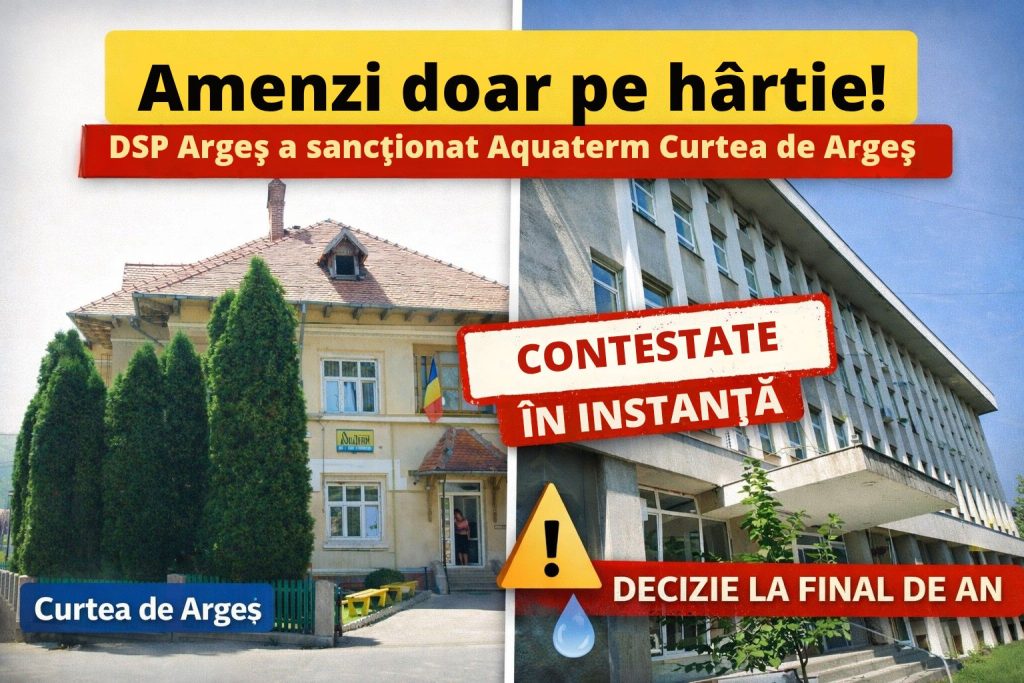 Pentru toate problemele, Direcția de Sănătate Publică Argeș a amendat compania furnizoare de apă. A aplicat două amenzi și ambele au fost contestate la instanță de către societatea sancționată. Judecătoria Curtea de Argeș este instanța care va analiza cele două contestații, dar acest lucru nu va fi pre curând deoarece au fost date termene în noiembrie și decembrie.